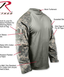 Rothco’s Military Combat Shirts Are Made For Comfort, But Worn For Protection. The Combat Shirt Is Perfect For Military And Tactical Personnel In The Field To Wear Under Hot, Heavy Body Armor And Tactical Vests. This Combat Shirt Is Made Of A No Melt, Drip Resistant Fabric To Withstand Heat Up To 230 Degrees Fahrenheit. The Shirt Has Been Designed With A Lightweight And Breathable Fabric Will Wick Moisture Away, While Keeping You Dry. Zippered Sleeve Storage Pockets, Mock Turtle Neck, Anti-Abrasion Padded Elbow Patches, Gusseted Sleeves, Glint Tape Holder For Tape, Loop Field On Sleeve Pockets For Attaching Name, Rank & Flag Patches.
