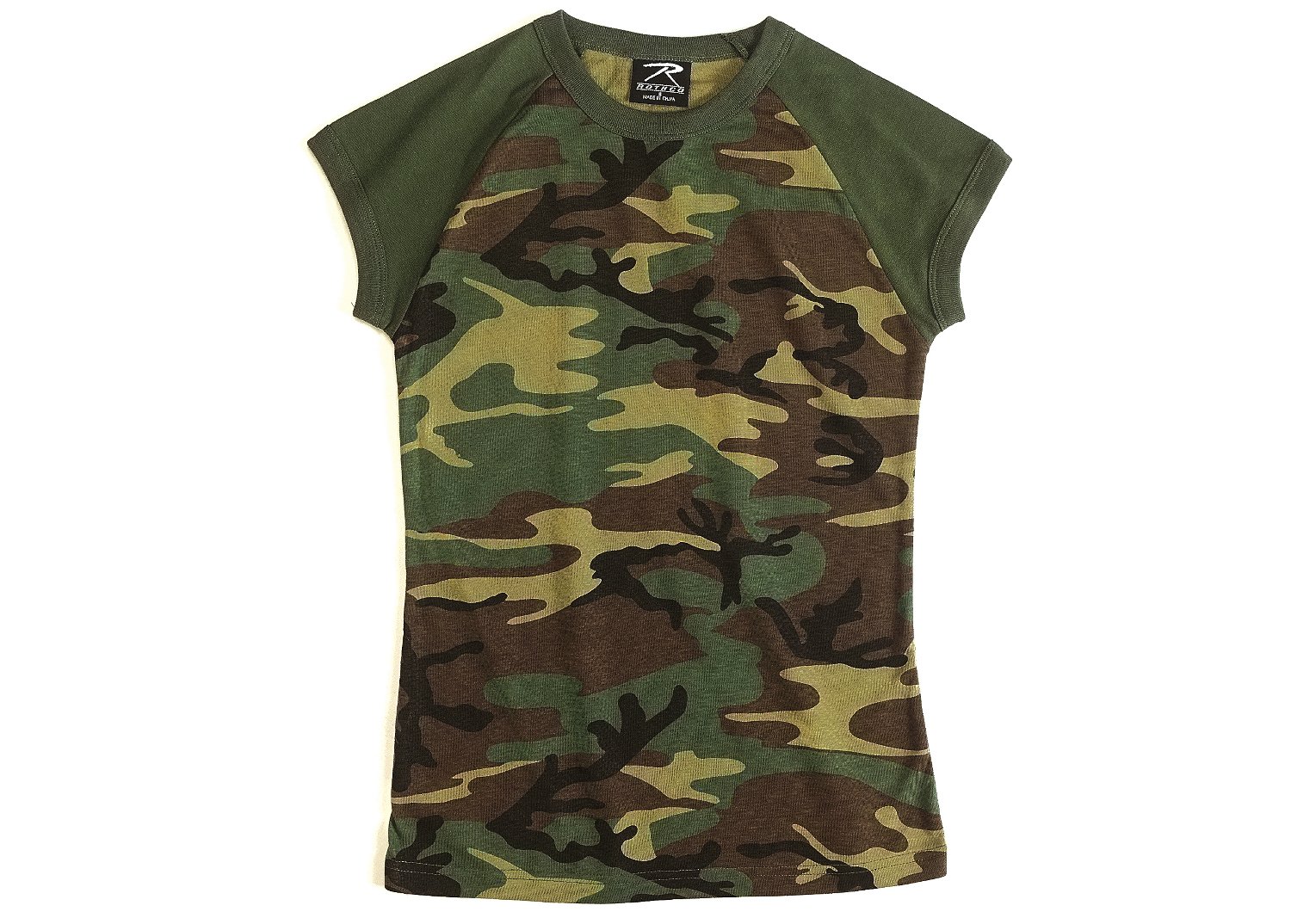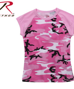 Rothco Short Sleeve Camo Raglan T-Shirts are available in 5 great color combinations that feature a camouflage body with solid color collar and cap sleeve.